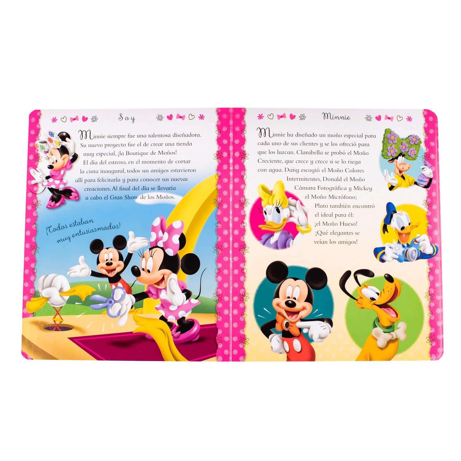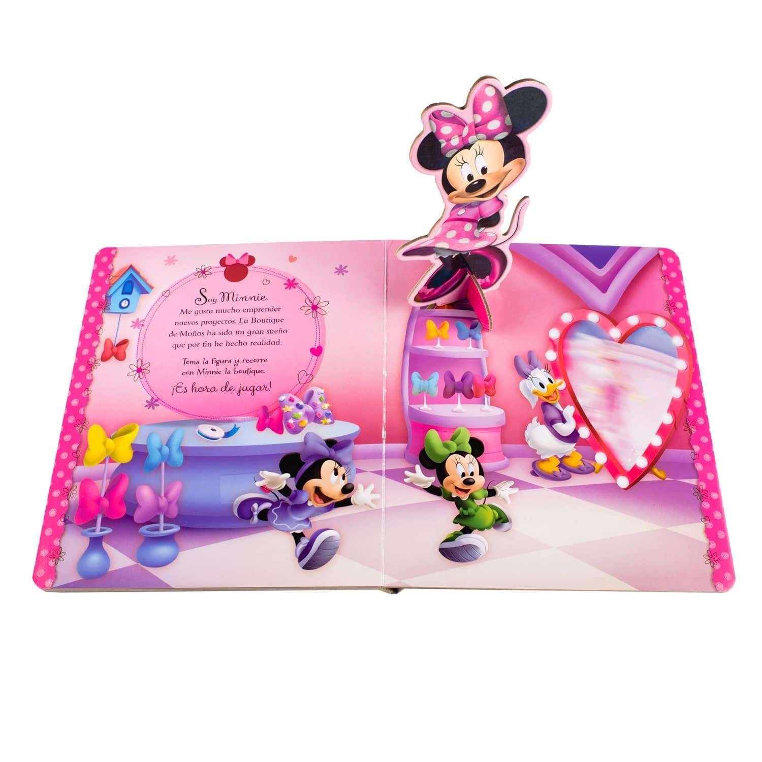 Comparte las emocionantes aventuras de Minnie. ¡Lee la historia y juega con Minnie en los rincones de La Boutique de Moños! Toma la base de la contra cubierta e inserta en ella las figuras.